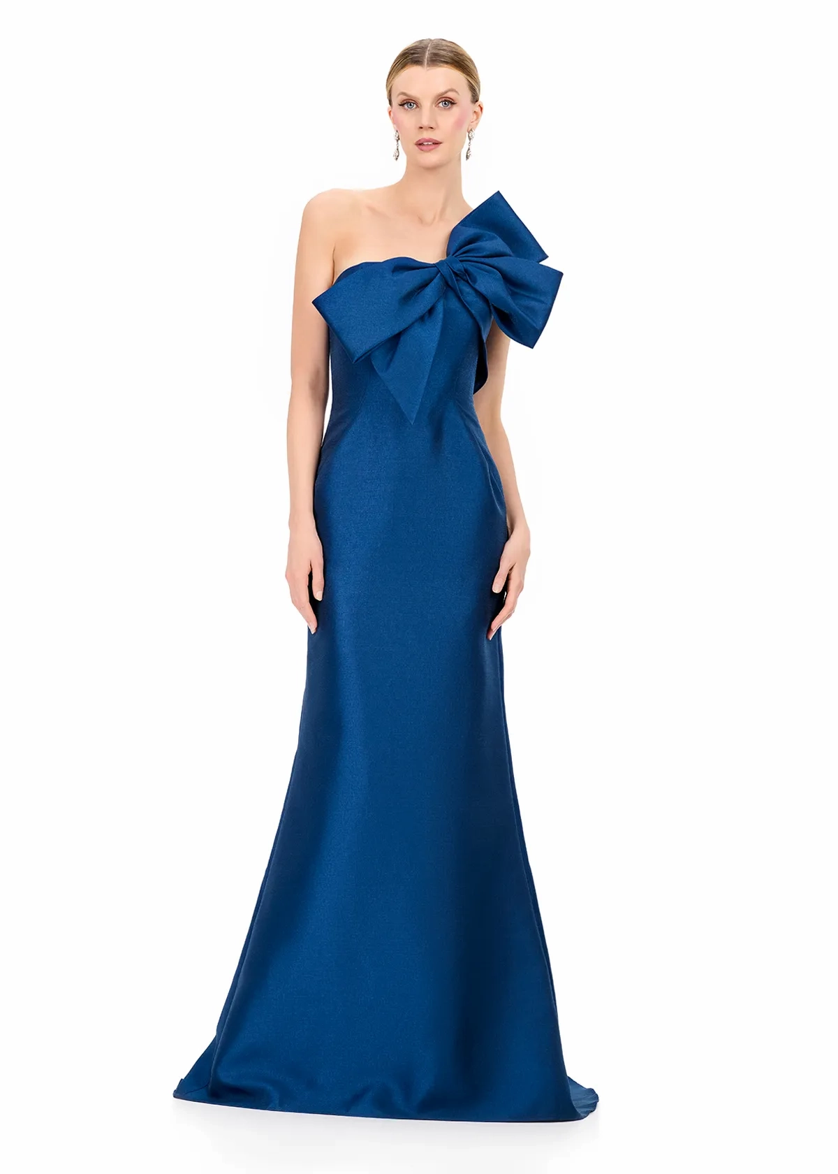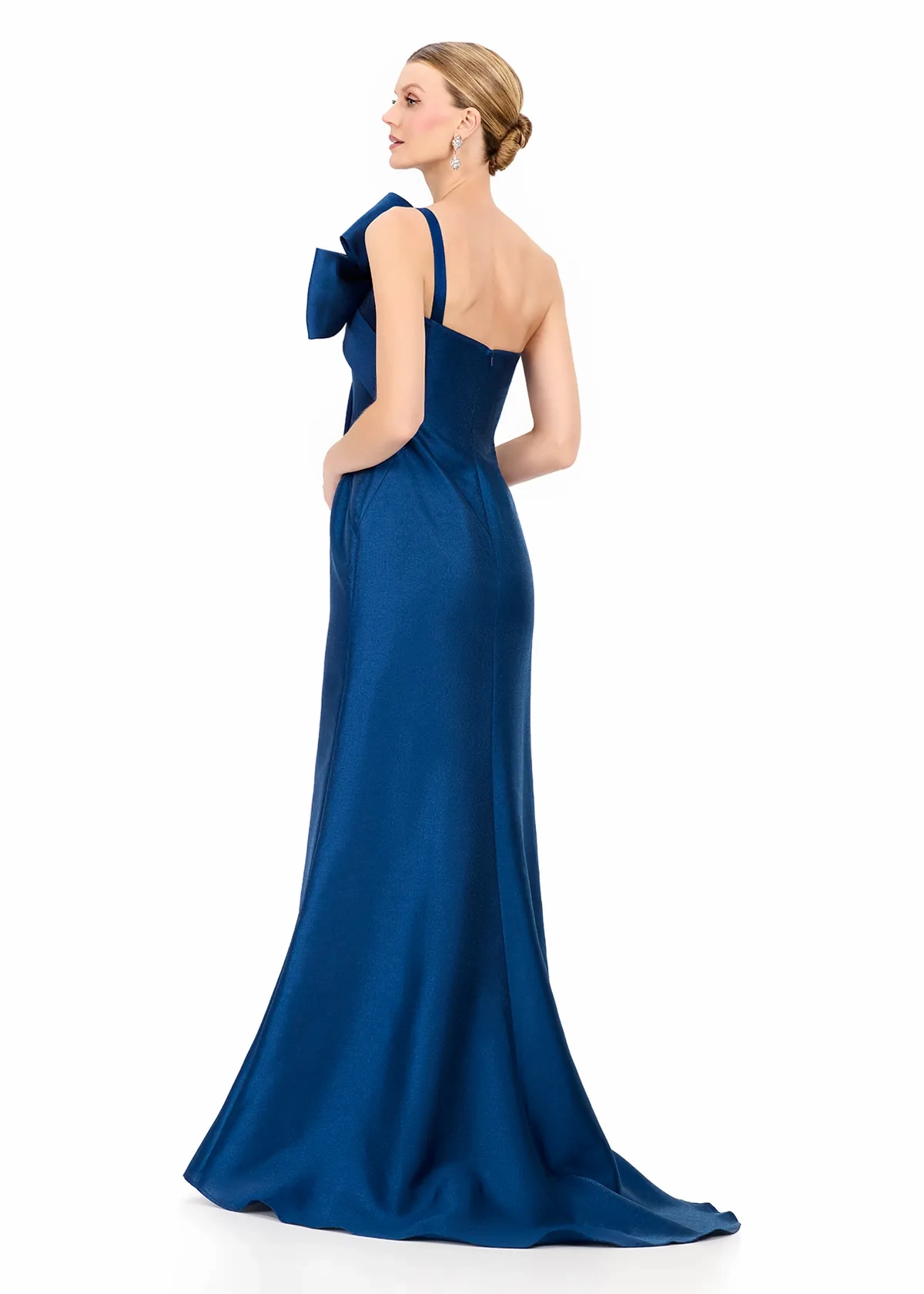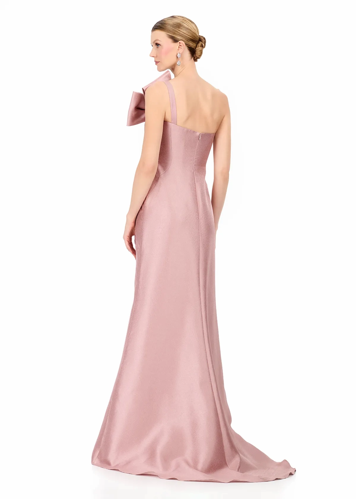 Elevate your formal wardrobe with ASHLEYlauren Style E12224, a sleek and modern strapless evening gown designed to make a sophisticated statement. Featuring a dramatic oversized bow detail and crafted in luxurious mikado, this gown blends timeless elegance with bold couture styling.