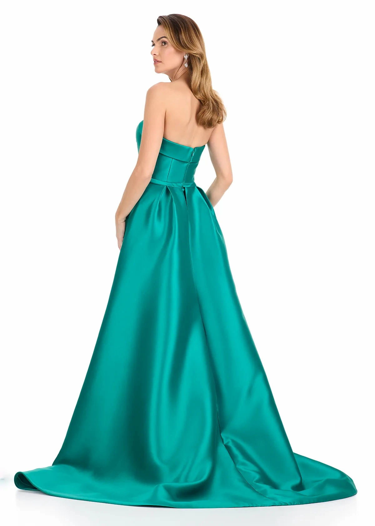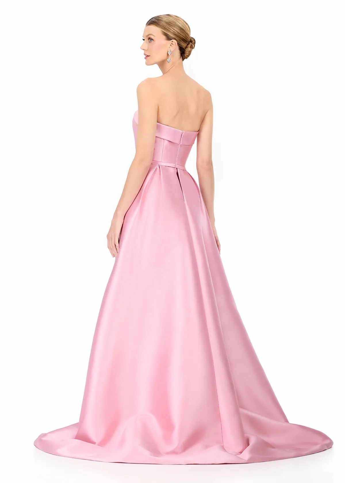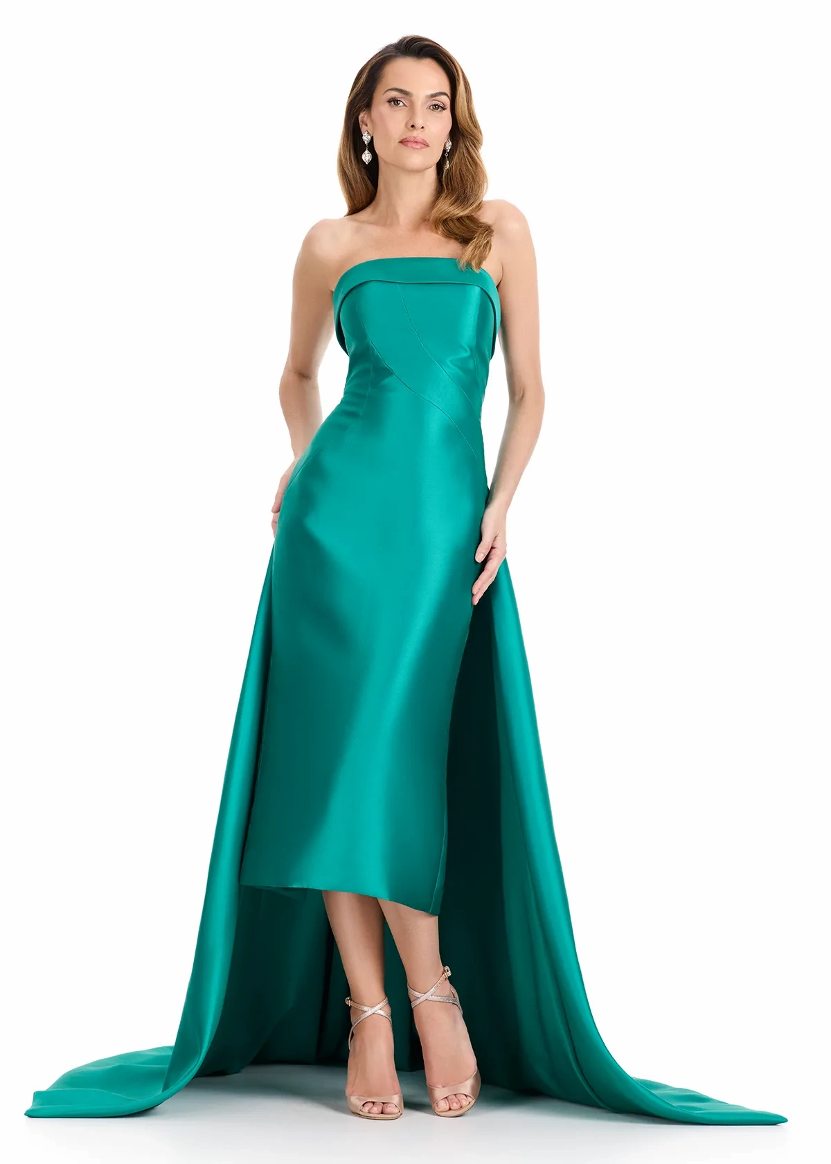 Make a bold and elegant entrance in ASHLEYlauren Style E12316, a sleek strapless gown featuring a dramatic removable overskirt for a look that exudes both modern glamour and timeless sophistication. Designed to elevate your special event style, this gown delivers the perfect blend of structure, luxury, and high-fashion detail.