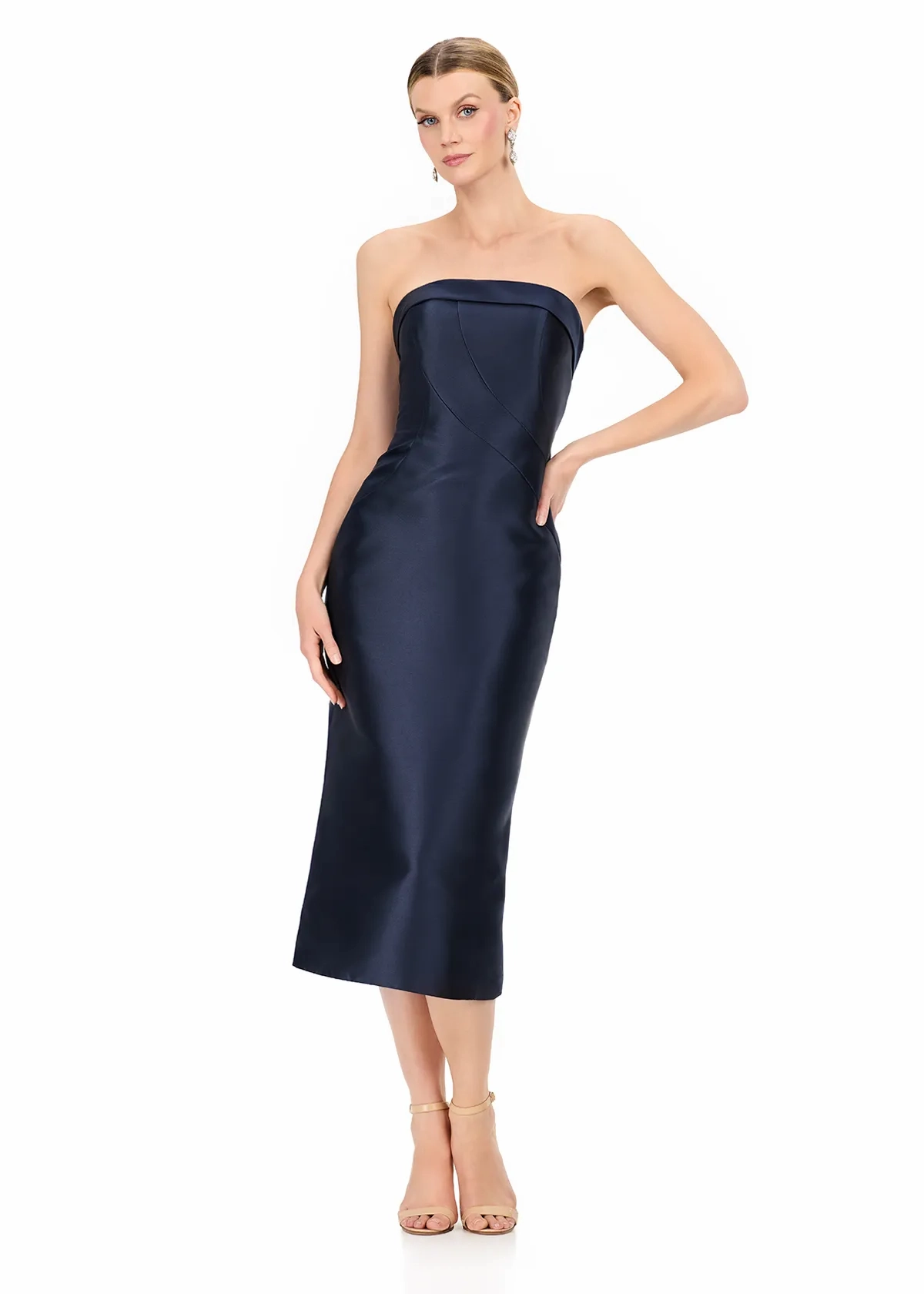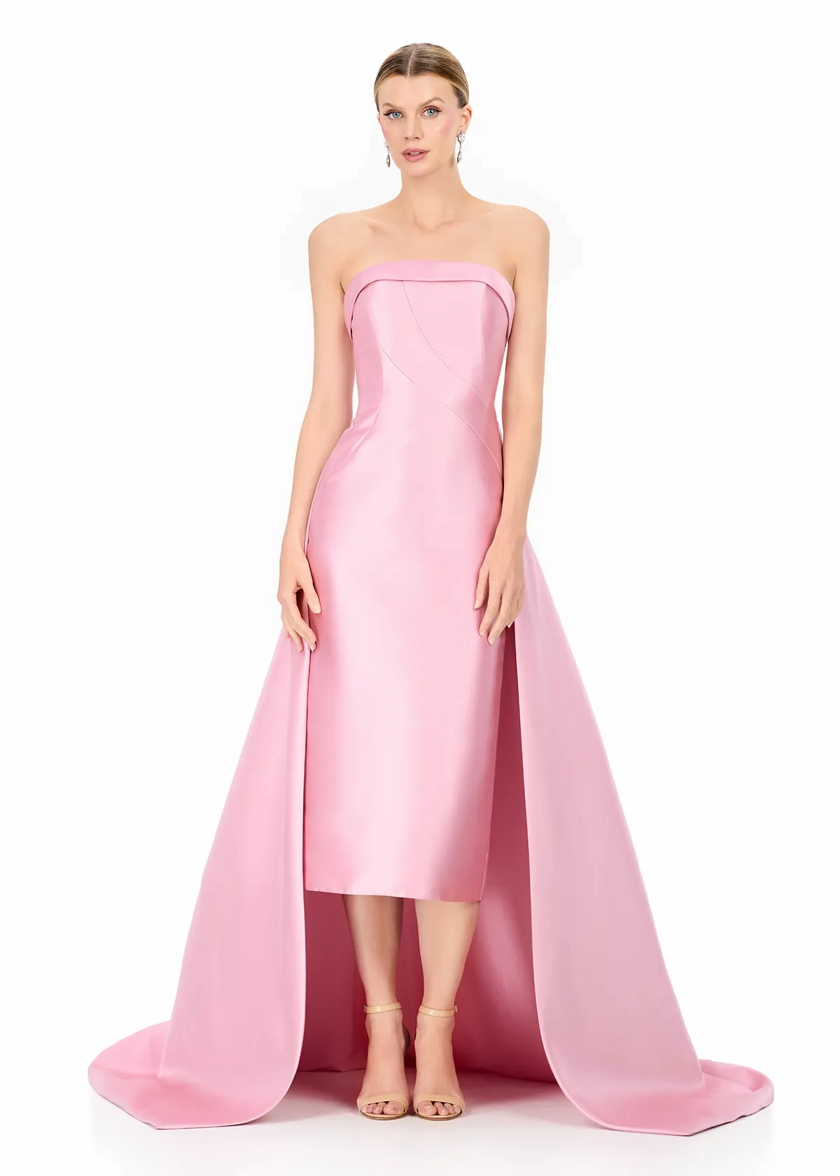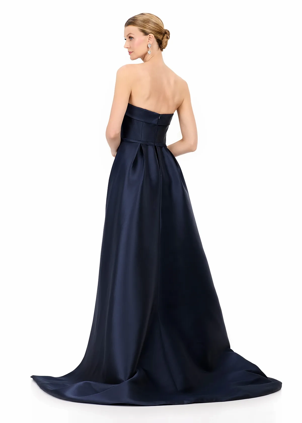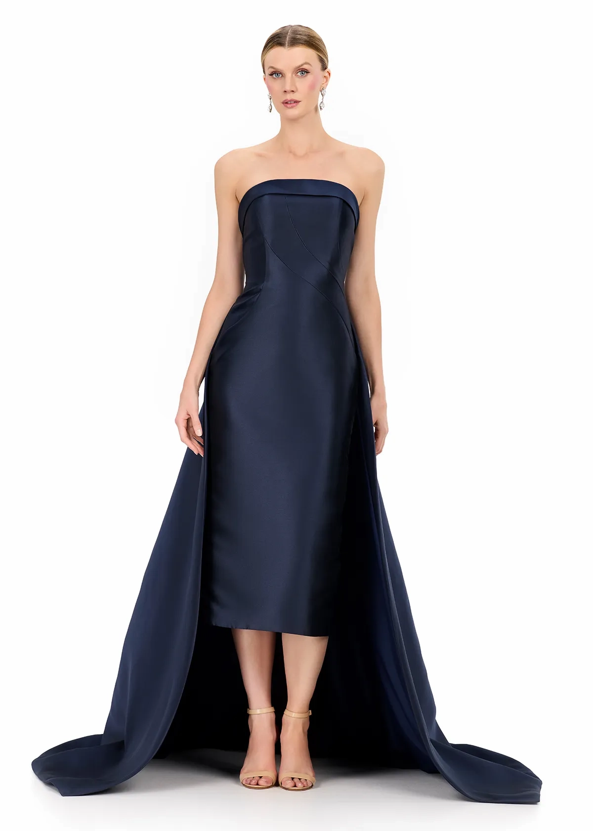 Make a bold and elegant entrance in ASHLEYlauren Style E12316, a sleek strapless gown featuring a dramatic removable overskirt for a look that exudes both modern glamour and timeless sophistication. Designed to elevate your special event style, this gown delivers the perfect blend of structure, luxury, and high-fashion detail.