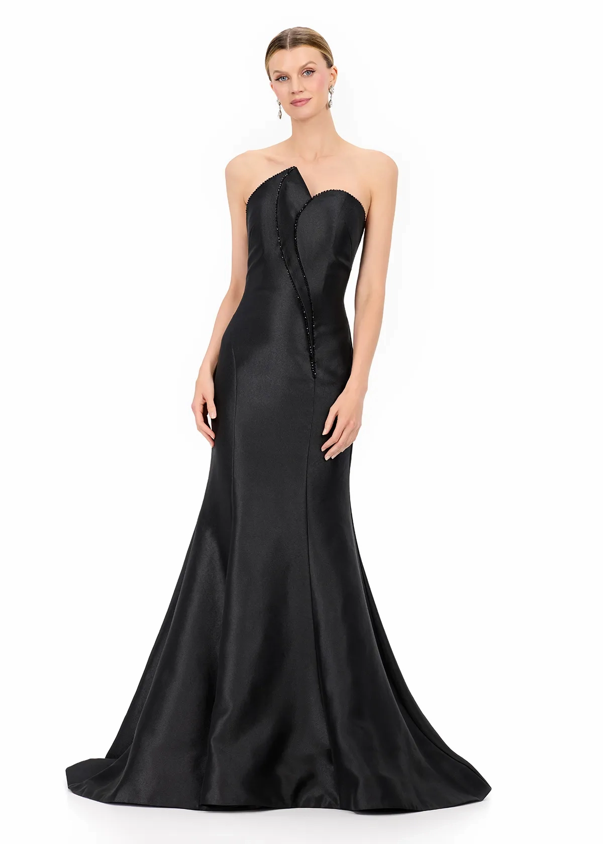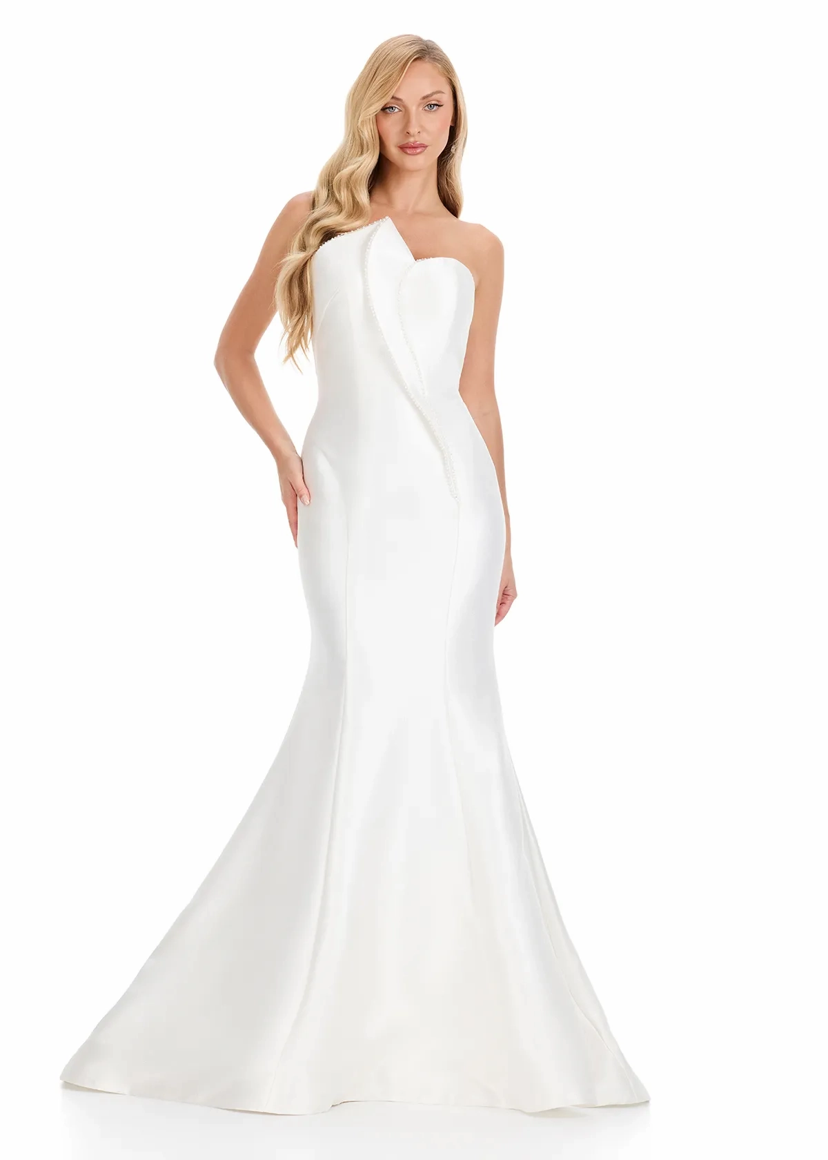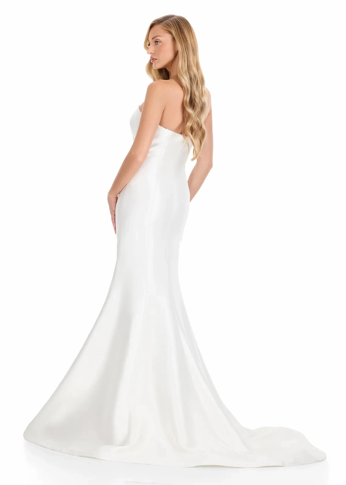 Meet ASHLEYlauren Style E12318, a modern and sophisticated satin gown crafted for the woman who appreciates sleek minimalism and timeless glamour. With its sculpted silhouette and elegant beaded detail, this gown delivers a polished and luxurious look designed to captivate at every formal occasion.